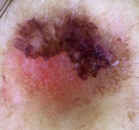 日光性角化病的确诊主要依靠组织病理,但是随着医学的进步,皮肤镜成为一种重要的无创辅助诊断工具。皮肤镜是将肉眼或是常规使用的放大镜看不见的皮肤结构可视化,同时具备显微镜放大功能和一定“透视”能力。皮肤镜的优势与意义:辅助疾病的诊断及鉴别诊断并评估某些肿瘤性皮肤疾病的边界;增加诊断的准确性、敏感性及特异性;帮助分隔可疑皮损区域,指导手术或治疗面积;减少不必要的皮肤活检或其他有创检查。