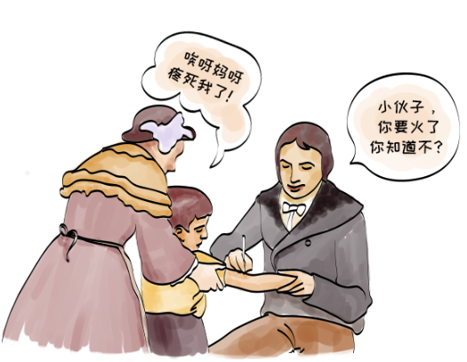 1796年,英国医生詹纳(Edward Jenner,1749—1823)将正在出牛痘的女孩皮肤水泡中的液体接种到一个8岁健康男孩身上,堪称医学史上最为冒险的一次实验,世界上第一支疫苗由此诞生。