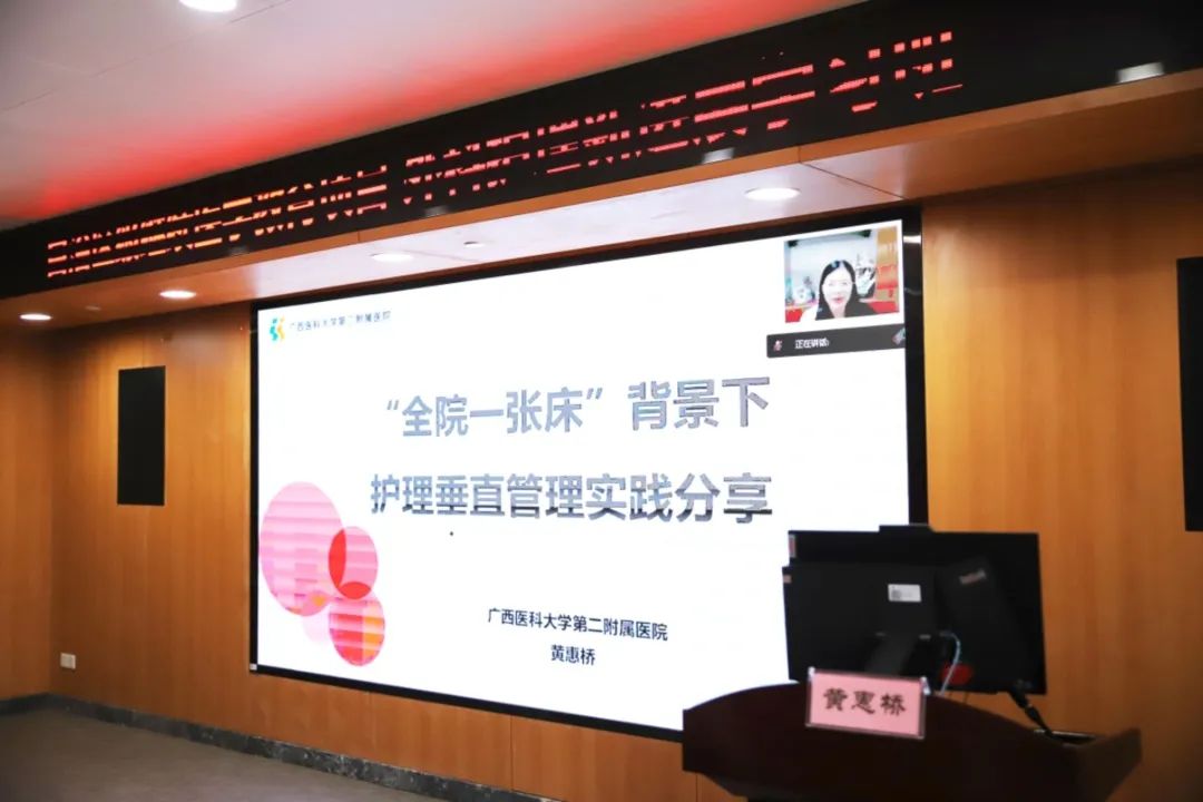 广西医科大学第二附属医院党委副书记黄惠桥教授就《“全院一张床”背景下,护理垂直管理实践分享》作专题报告