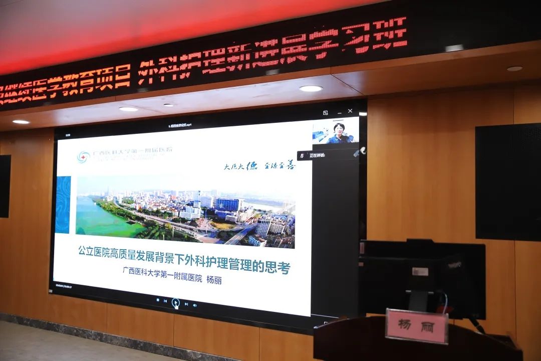 广西医科大学第一附属医院护理部主任杨丽主任护师就《公立医院高质量发展背景下外科护理管理的思考》作专题报告