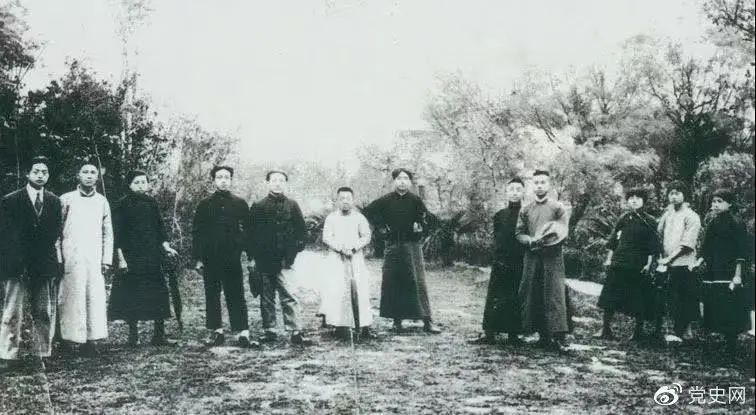 1920年5月8日,新民学会部分会员在上海半淞园合影。左七为毛泽东。