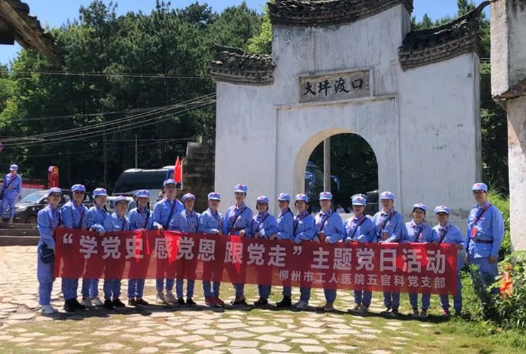 6月5日下午,五官科党支部和门急诊科党支部全体党员来到湘江战役四大渡口之—大坪渡口接受现场教学。
