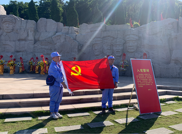 站在“红军魂”雕塑前,全体党员在五官科党支部书记李玲波的带领下,高举右手再次发出铿锵誓言:“我志愿加入中国共产党,拥护党的纲领,遵守党的章程……”